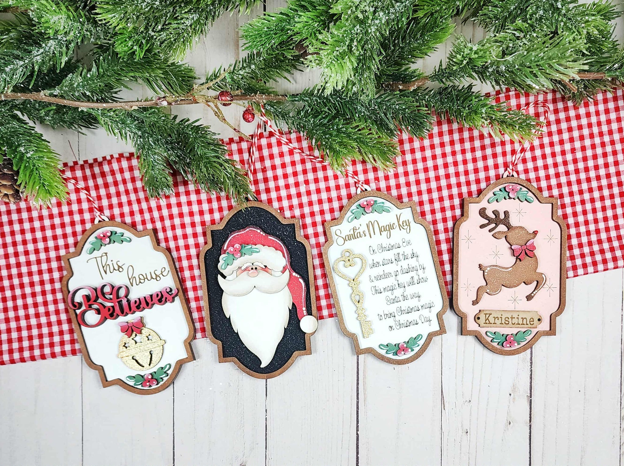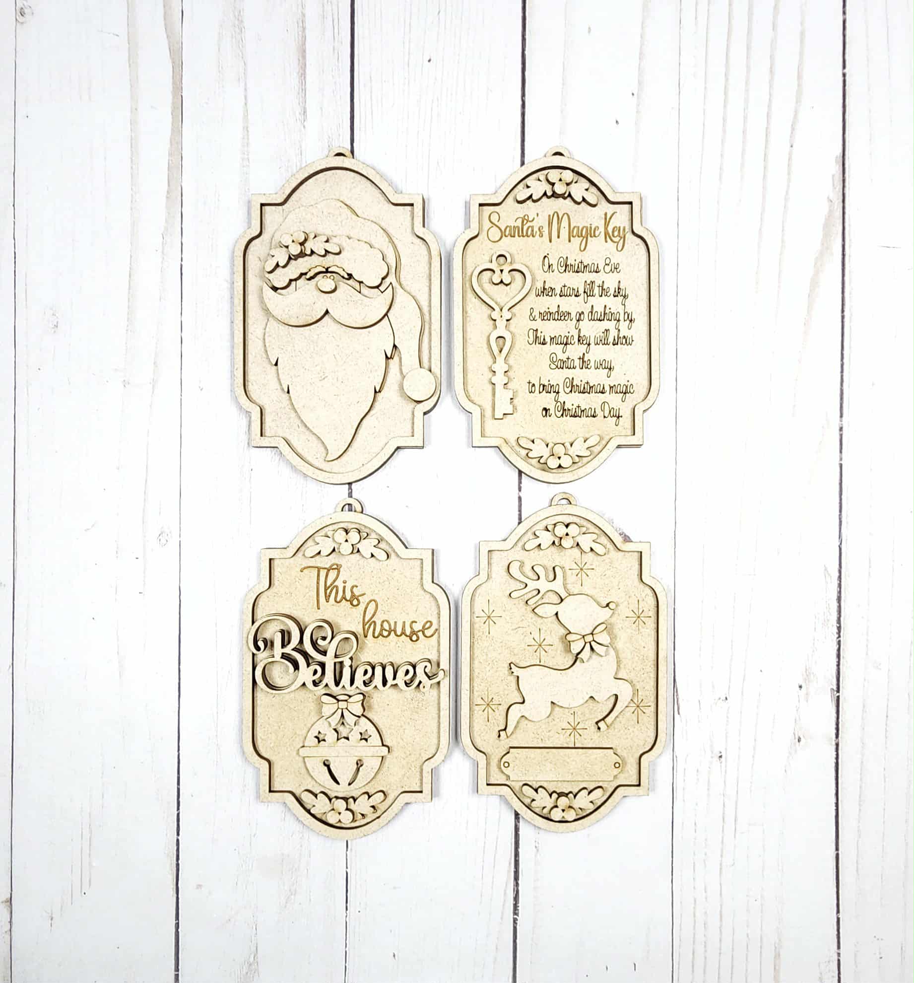 Holiday ornament comes as a set of 4. unfinished and unassembled ready for you to paint and glue together. String / ribbon not included in diy kit so you can pick your own.