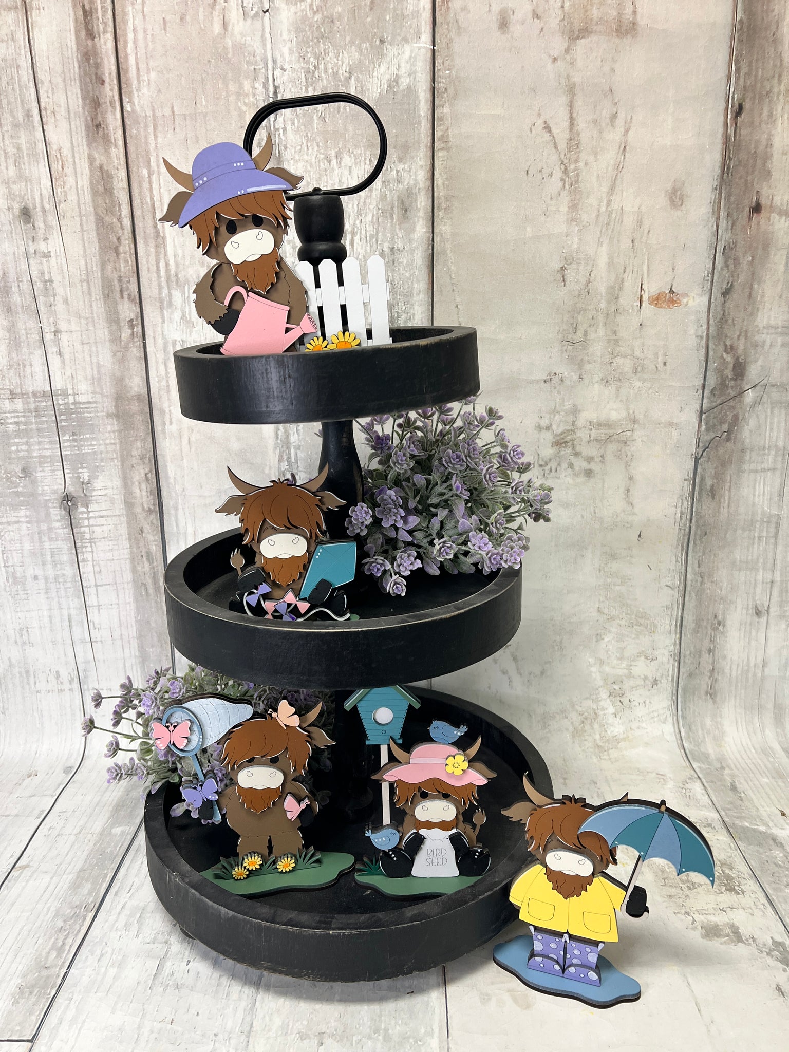 Spring highland cows standing Tier Tray set of 5 diy Kit